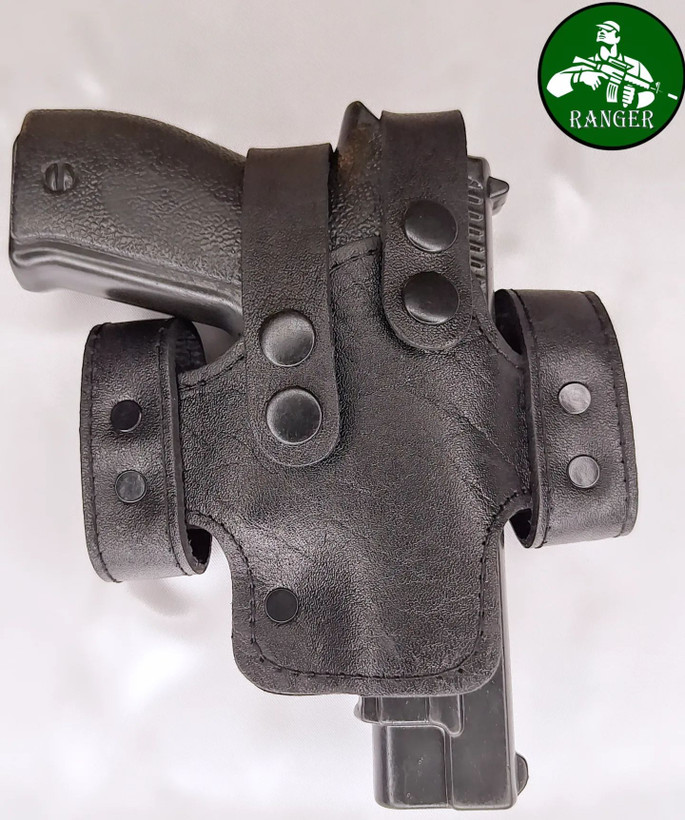 غلاف اسلحه جنس : چرم رنگ : مشکی/قهوه ای مدل :صلیبی دو بند تک کاره : قابلیت نصب روی فانسقه